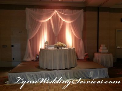 Due to the custom design purposes for each individual venue, we do not post all of our backdrop galleries on line. We recommend you make an appointment for a consulation so we can help you pick out the perfect wedding backdrop design style and theme color that fit your budget.